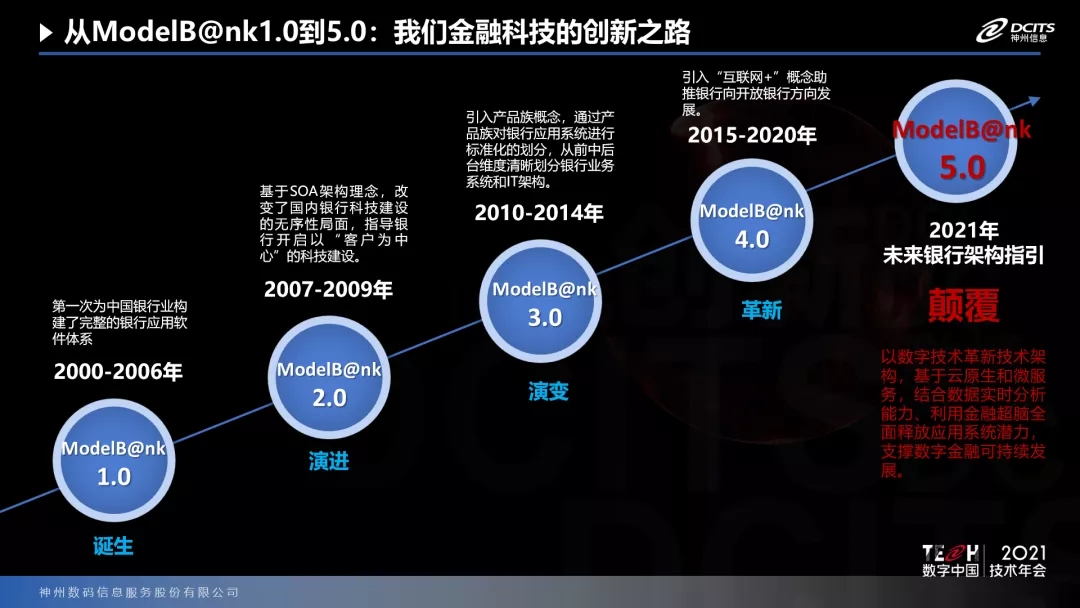 神州信息副总裁马洪杰:“神州信息的发展过程一直伴随着对整个金融行业的理解。我们有一款产品叫做ModelB@nk,已经迭代到第五代,ModelB@nk5.0就是指引金融机构未来发展的应用架构蓝图。”
